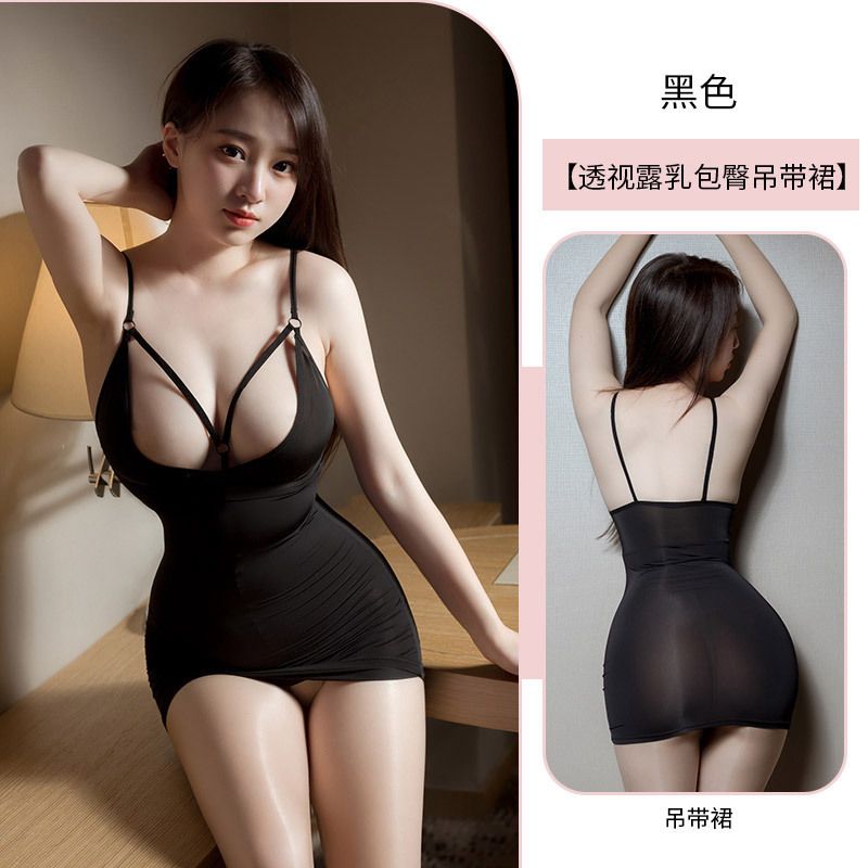 爆乳紧身露乳吊带包臀裙