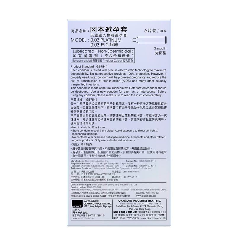 【避孕润滑】冈本003白金6只装